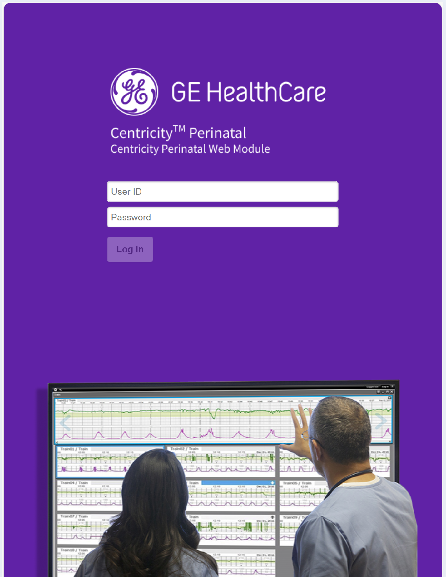 - Tap Log in. Note If the system is unable to authenticate your User ID or password, a message is displayed stating as such. Try again, then contact the System Manager if it continues.Note If you do not have a license to use Centricity Perinatal Web, a message is displayed stating as such. Contact the System Manager to obtain access.
